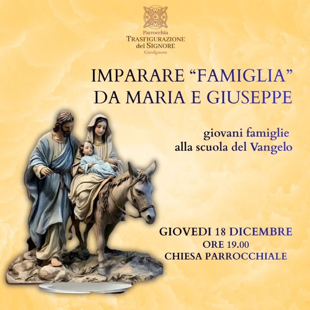 L’incontro, dal titolo “Imparare ‘famiglia’ da Maria e Giuseppe”, si terrà giovedì 18 dicembre alle ore 19.00 nella Chiesa parrocchiale.